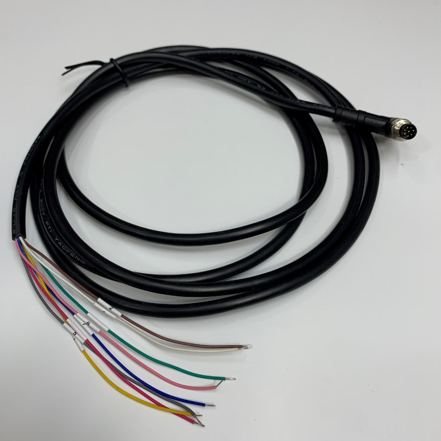 Cáp 2M 6.5ft CAZN Industrial Cable Right Angle Connector M8 A-Code 8 Pin Male Circular to 8 Core Open End Sensor Cable E495753 26AWG 80C 300V YAOFENG OD 5.3mm