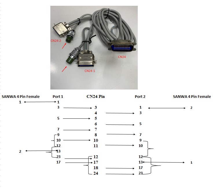 Cable Type: Centronics 24 Pin Male to Dual Centronics 24 Pin Male 2 Rows 2.16mm Pitch + 2 Port SANWA 41-6590 4 Pin Female