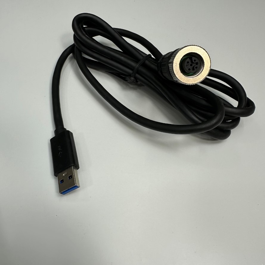 Cáp 2M 6.5ft USB 2.0 Male to M12 4 Pin A-Code Female For Industrial Sensor Cable M12