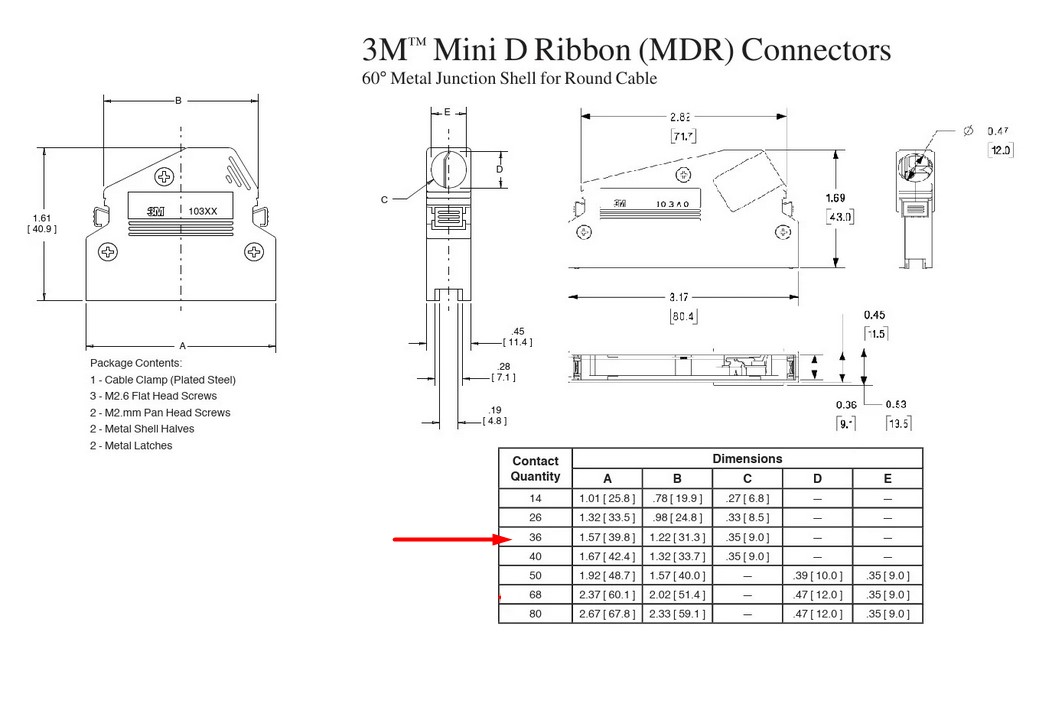 Connector Type 2: 3M 10336 MDR 36 Pin Male Pitch 1.27mm with 60 Degree Metal