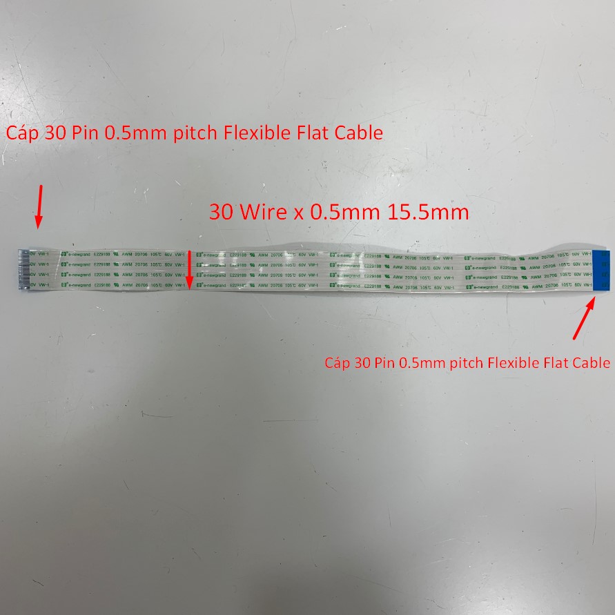 Cáp 30 Pin 0.5mm pitch Flexible Flat Cable Ribbon FFC 30 Wire x 0.5mm 15.5mm Dài 22Cm e-newgrand E229188 AWM 20706 105ºC 60V VW-1 Connector Type A