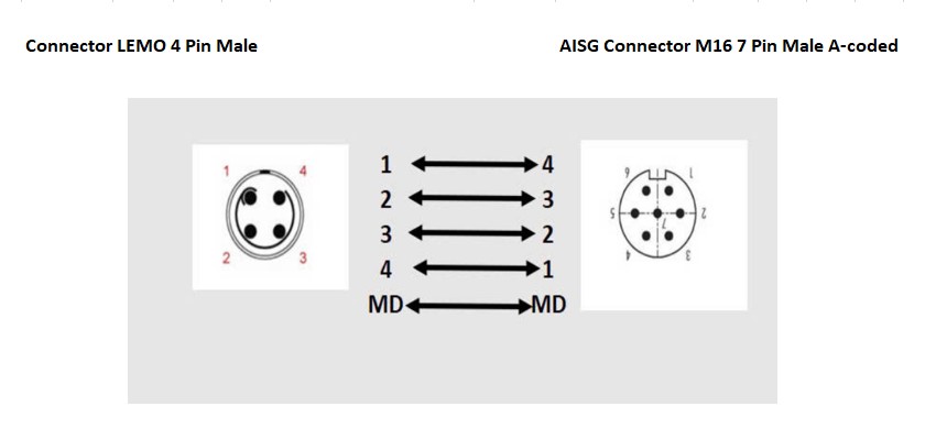 Cáp 3M 10ft AISG Connector M16 7 Pin Male A-coded to LEMO 4 Pin Male Connection Cable