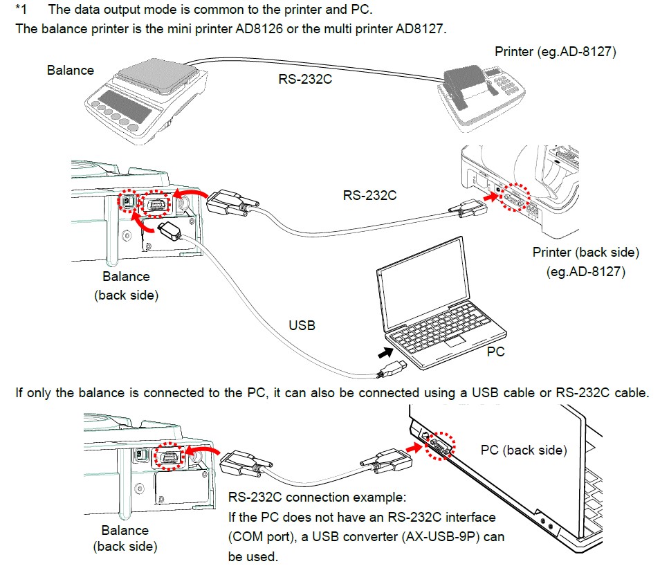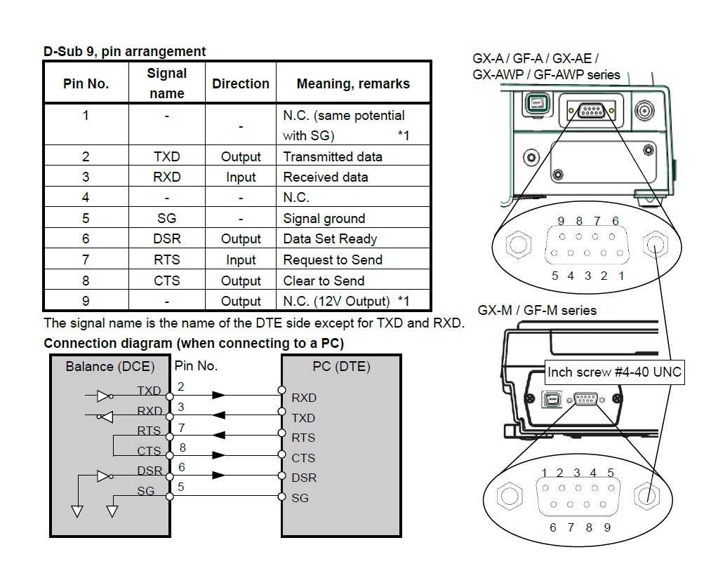 Connector 1: DB9 Female Connector A&D Balance GF Series