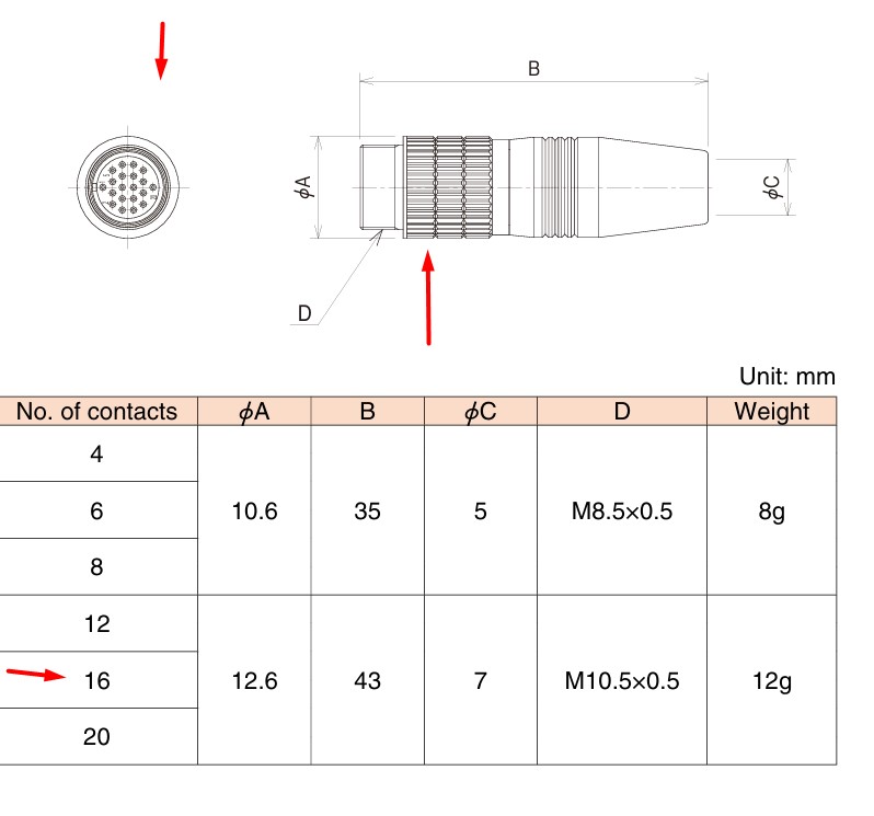 Specifi cations Hirose HR25-9TJ-16S 16 Pin Female