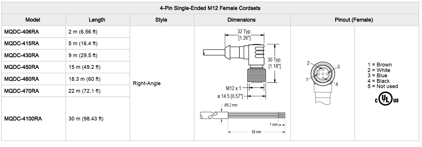 4-Pin Single-Ended M12 Female Cordsets