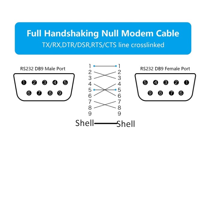DB9 RS232 Serial Cable Male to Female Null Modem Cord Full Handshaking 8 Wire Crossover