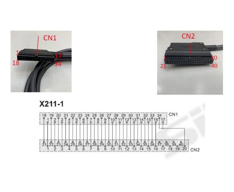Cáp 3M 10ft Siron X211-1-3000MM CN1 IDC 34 Pin to CN2 IDC 40 Pin Pitch 2.54mm Cable 28AWG PVC For PLC Keyence Kv Series witch Terminal Blocks T007,T011,T063