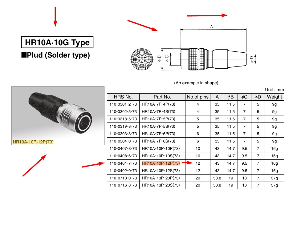Connector Hirose 12 Pin Male HR10A-10P-12P(73)