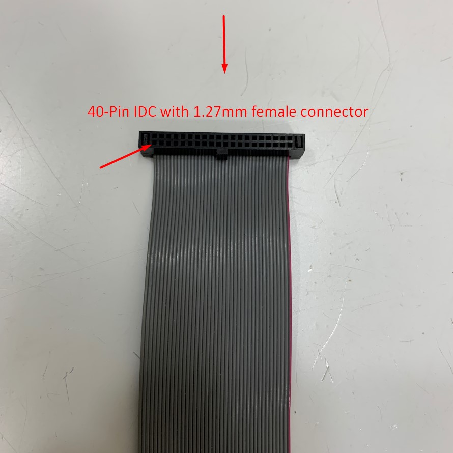 Two 1.27mm pitch 2x20pin female IDC connectors on each end.