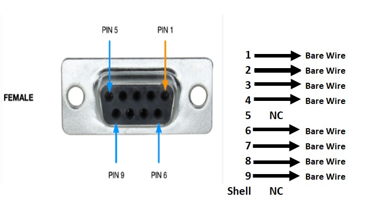 Cáp 4M 13ft Conncetor DB9 Female to 8 Core Bare Wire RS232/RS485 Serial Port Extension Cable 300V 24AWG x 8C SHIN HWA For I/O Cable PLC/HMI