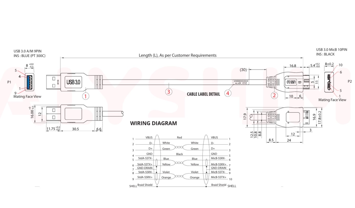 Shielded Cable USB 3.0 E119932-T AWM 20276 80C 30V VW-1 COPARTNER