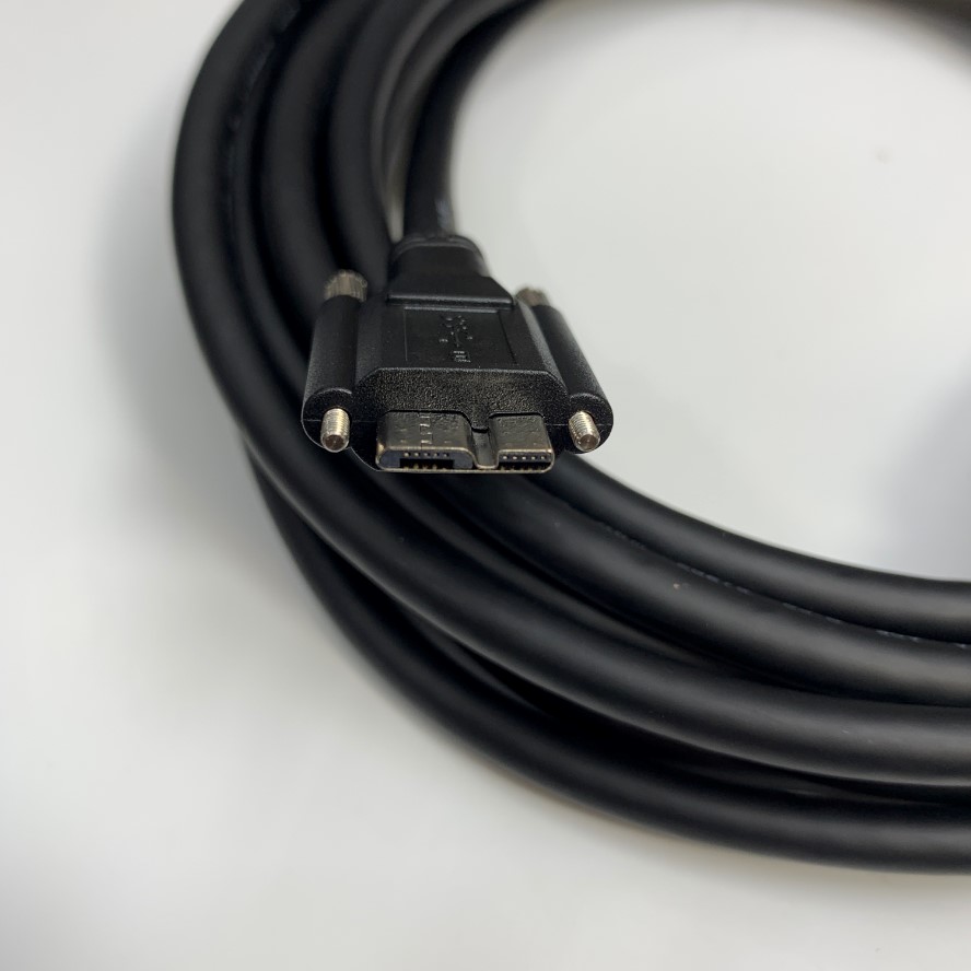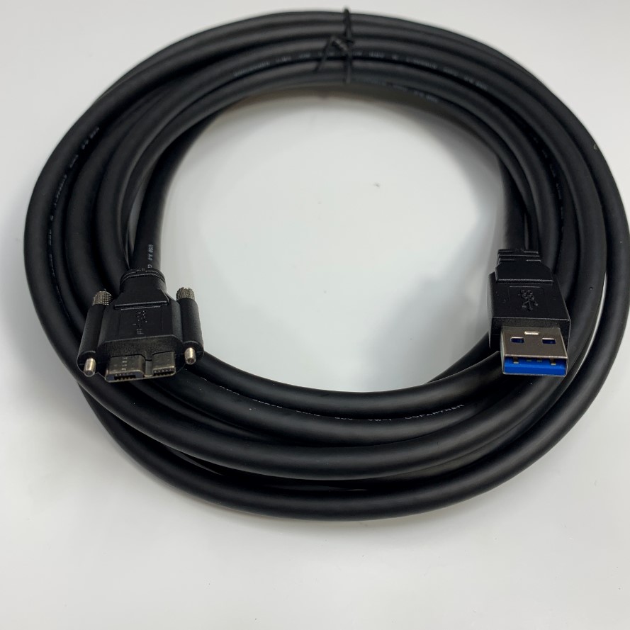 Cáp 5M 17ft Camera Cable USB 3.0 Type A to Micro B Male With Screw Locking Data Transmission 5Gbps For Basler ace A5472-17um USB 3.0 Industrial Camera, Hikrobot, Microscope Digital Camera