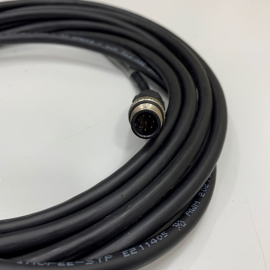 Cáp 5M 17ft M12 8 Pole A-Code Male to 8 Core Open End Cable Shielded E211405 VW-1 24AWG For Cognex and Automation Camera