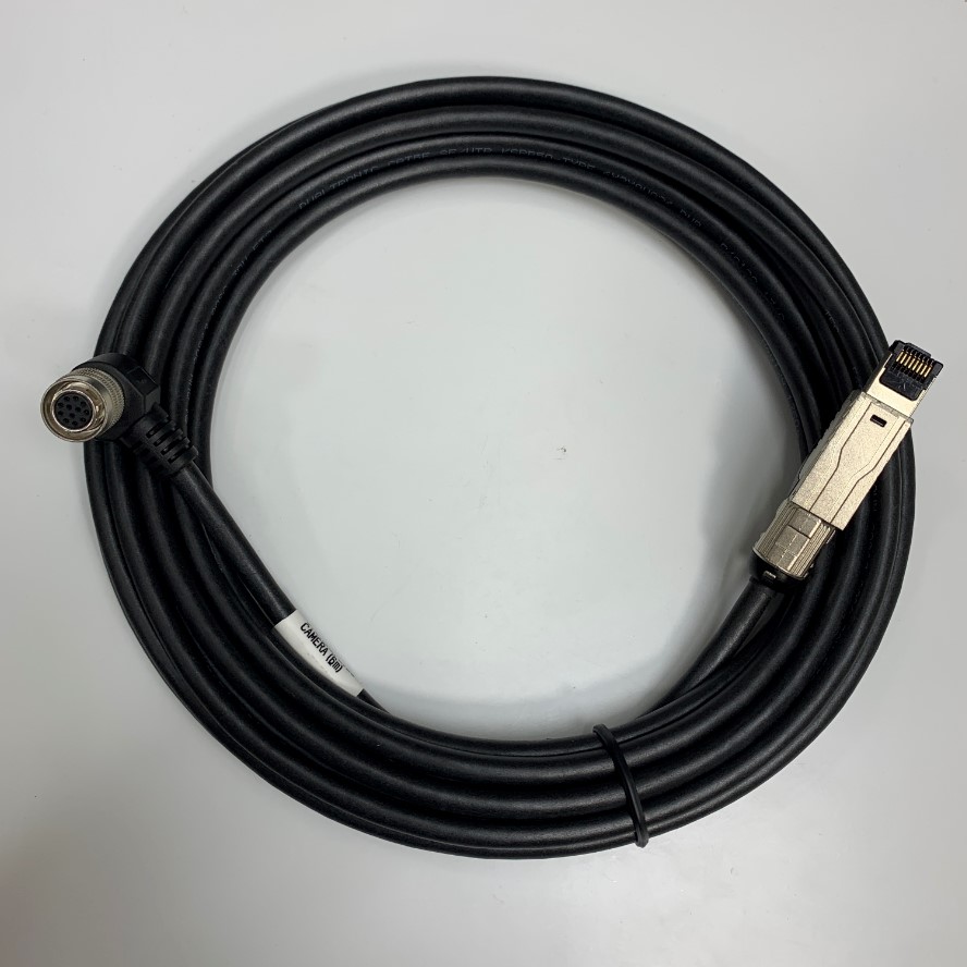 Cáp 6M 20ft SYSTEM2/LVDS Camera Right Angle Hirose HR10A-10P-12P(73) 12 Pin Female to RJ45 Male Cable TEC E497707-1 AWM 20963 80C 30V 4x2x26AWG OD 7.0mm For Industrial Camera Cable