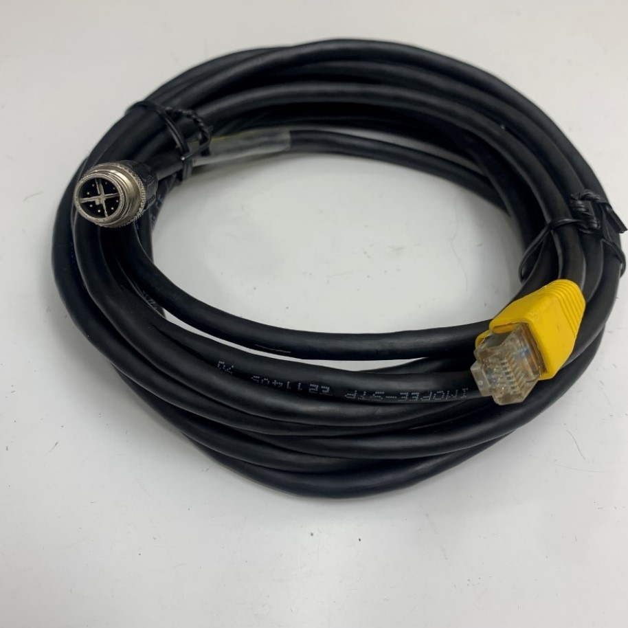 Cáp 7M 24ft XC-M12EN-M8SR-7M Cable Connector M12 X-Code 8 Pin Male to RJ45 CAT5E Shielded For Cognex Industrial Camera, Keyence SR-750 SR-650 Code Reader