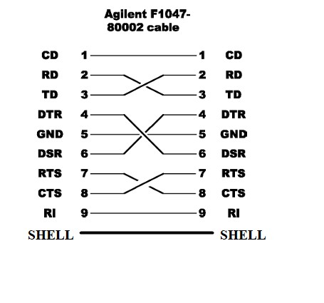 Wiring Diagram RS232C Serial Cross Cable Agilent F1047-80002 Serial Communication