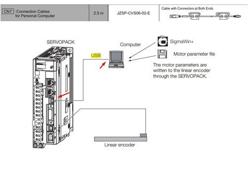 CN7 Connection Cables for Personal Computer JZSP - CVS06-02- E Cable with Connectors at Both Ends