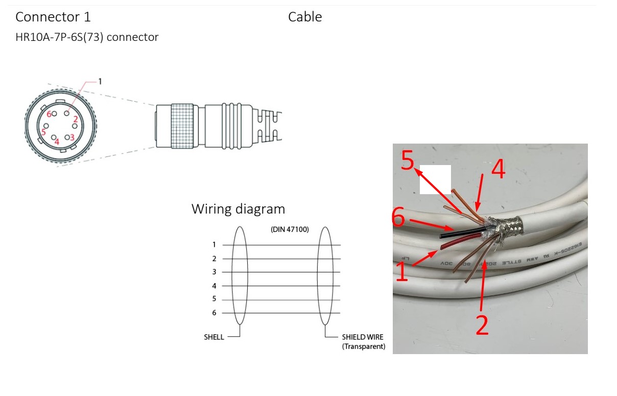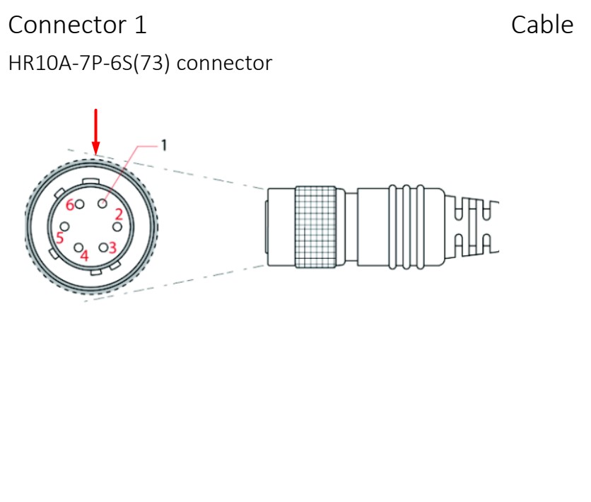 Connector 1: Hirose HR10A-7P-6S(73) 6 Pin Female