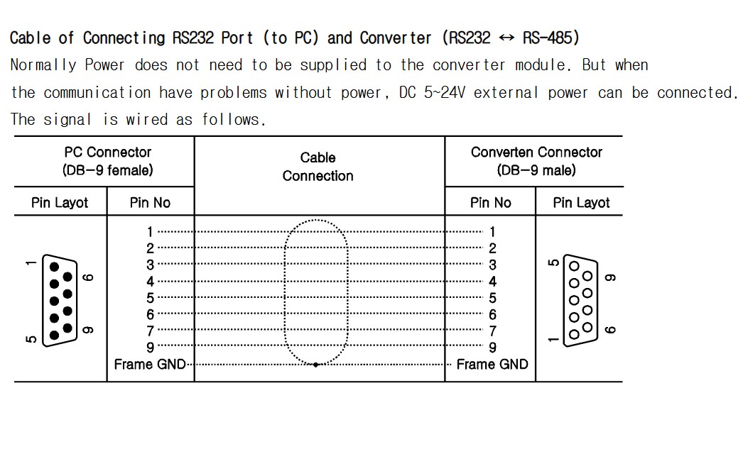 Cable of Connecting RS232 Port (to PC) and Converter (RS232 ↔ RS-485)