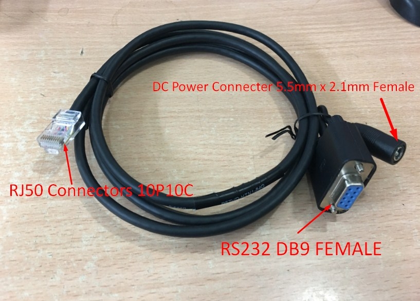1 - DB-9 (9 pin, D-Sub) Female 2- Connector Size 5.5mm x 2.1mm Female |