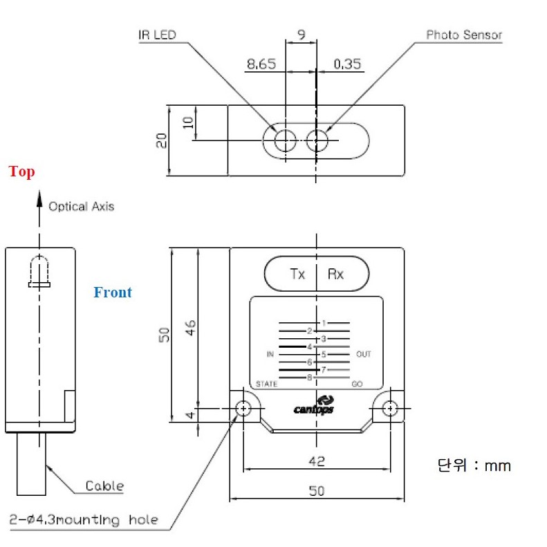 비접촉으로 주고 받는 장치로, 다양한 외부 광 노이즈에서도 안정적으로 동작할 수 있도록