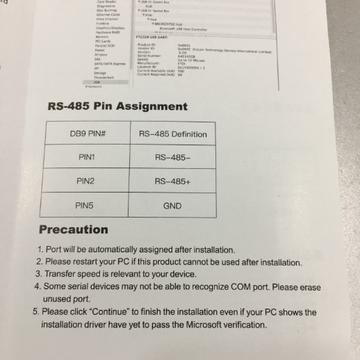 USB 2.0 to Serial RS485 Cable