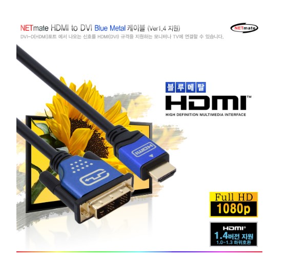 Cáp Chuyển Đổi Tín Hiệu NETmate NM-HD10BZ HDMI to DVI BlueMetal 10M