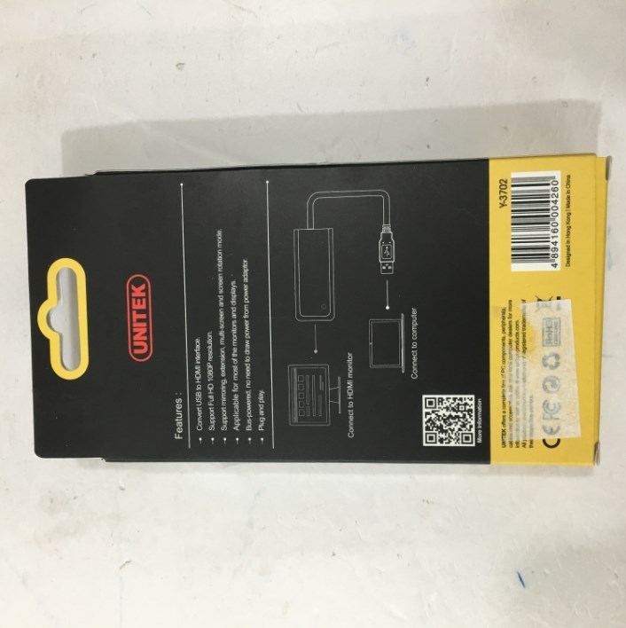 Cáp Chuyển Đổi Tín Hiệu USB 3.0 to HDMI 1080P Adapter Converter Unitek Y-3702 Cable Black
