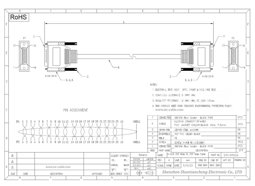 Cáp D-Sub 25 Pin DB25 Male to Male Cable Straight Through 17Ft Dài 5M Shielded Có Chống Nhiễu For Industrial Cable Laser Marking Machine Controller