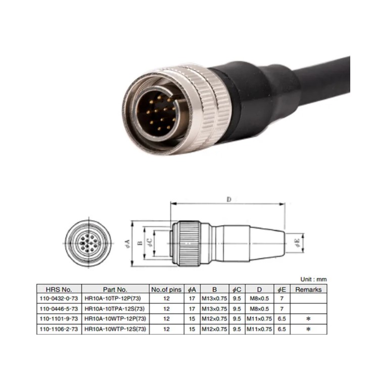 Hirose HR10A-10TP-12P(73) 12 Pin Male