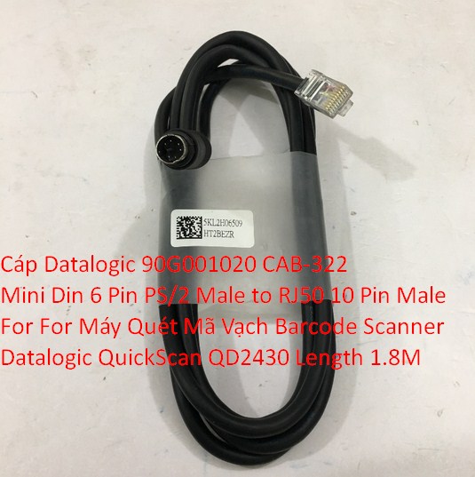 Loại sản phẩm: Cáp Datalogic 90G001020 CAB-322 Mini Din 6 Pin PS/2 Male to RJ50 10 Pin Male For For Máy Quét Mã Vạch Barcode Scanner Datalogic QuickScan QD2430 Black Length 1.8M