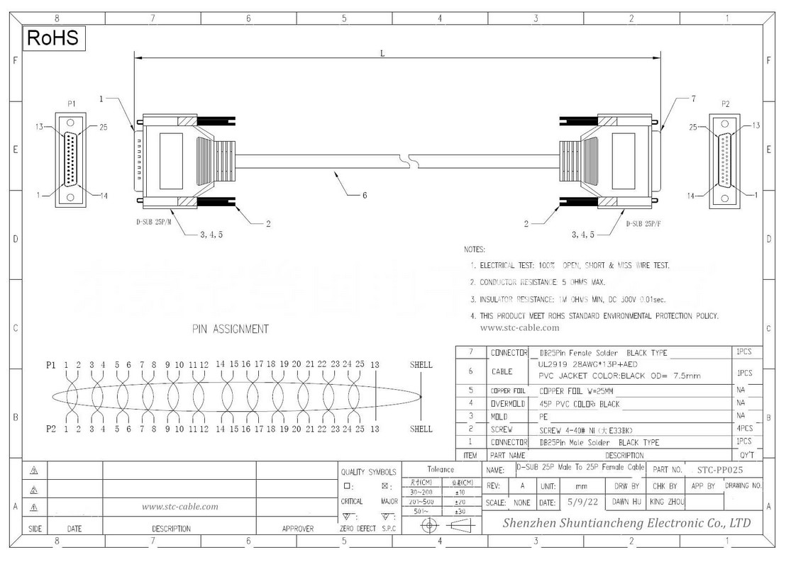 Cáp DB 25 Male to Female Cable 10Ft Dài 3M For Laser Marking Machine Controller PCI-E Board