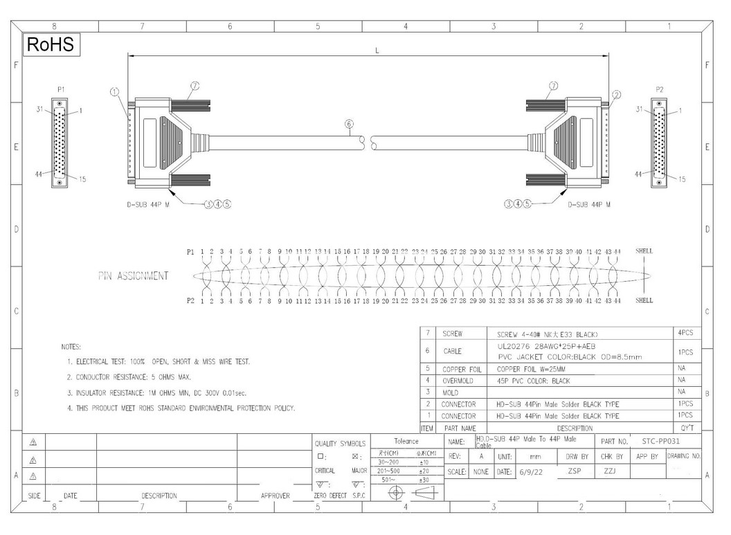 Wiring diagram D-sub 44Pin cable DB 44Pin Male to Male Cable Communication pinout