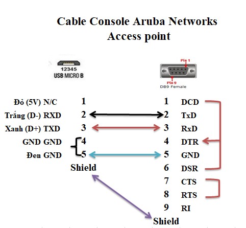 Cáp Điều Khiển Console Micro USB 5 Pin to Serial RS232 DB9 Female Cable Black 1.4M For HPE Aruba Networks Access Point
