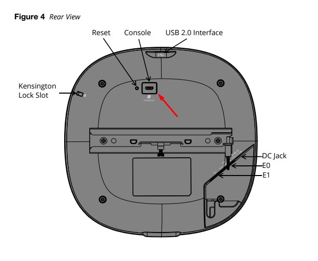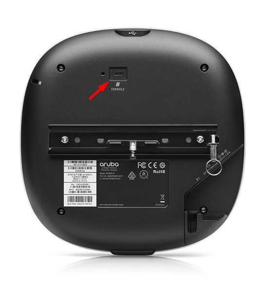 The console port is a Micro-B connector located on the back of this device. A proprietary serial adapter cable (APCBL-SERU) is needed to use this interface. It is sold separately to connect the AP to a serial terminal or a laptop