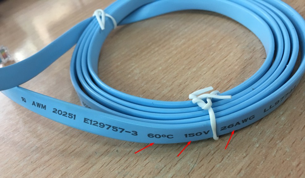 Chỉ số chỉ cỡ dây dẫn theo tiêu chuẩn: 26 AWG Copper Core Conductors (cáp đồng nhiều sợi liên kết / 1 core)