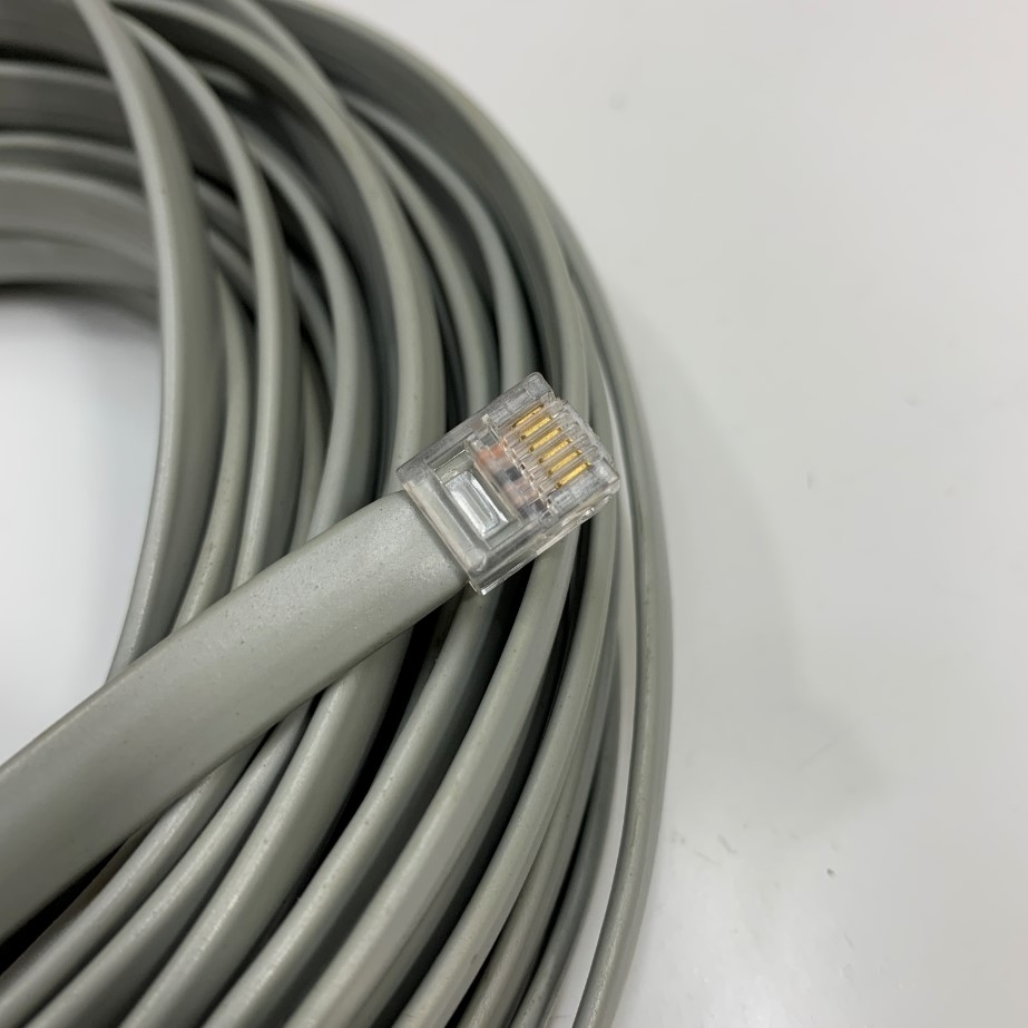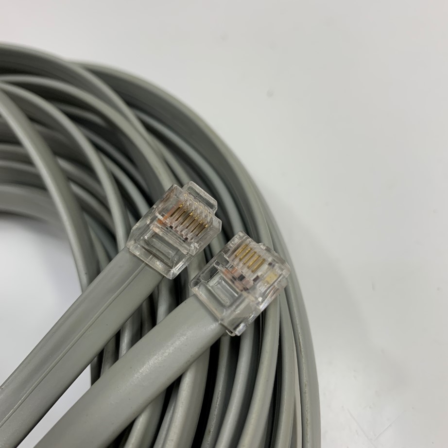 Cáp Điện Thoại Mỏng Dẹt Dài 10M Flat Telephone Cable RJ12 to RJ12 6 Pin 6P6C Male 26AWG Grey Jacket