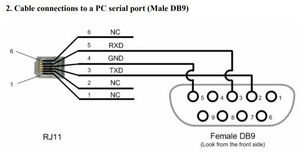 Rắc cắm kết nối Computer B: RS232 DB9 Female (thuật ngữ kỹ thuật đầu kết nối cổng Com 9 chân hai hàng chân cắm âm)
