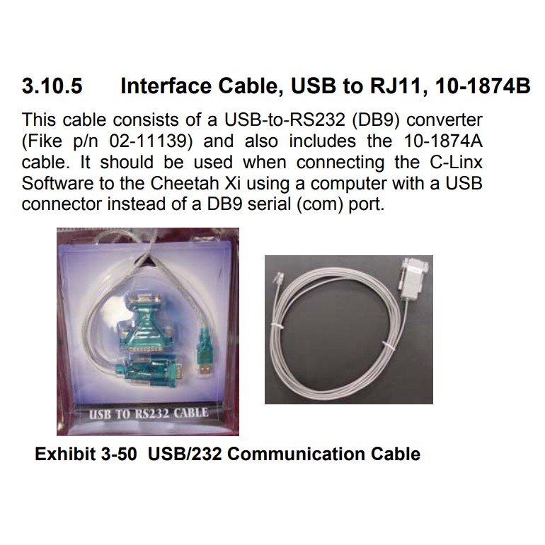 10-1874A by FIKE Interface Cable for C-Linx Software (DB9 to RJ11) 2M
