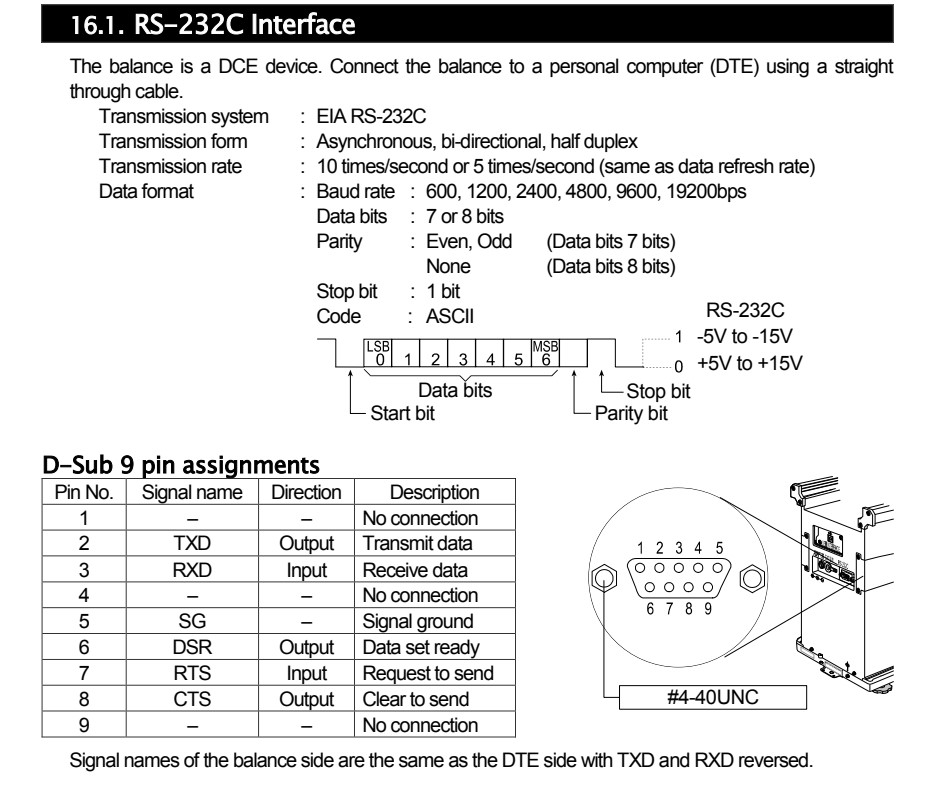 RS-232C Interface - A&D AND Balances Ion BM Series Weighing