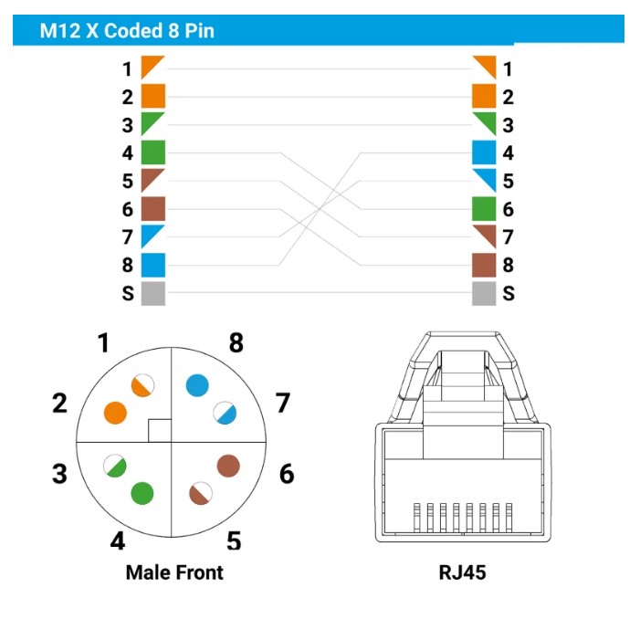 Wiring Diagram M12 X-Coded 8 Pin Male to RJ45 GigE Ethernet Cable