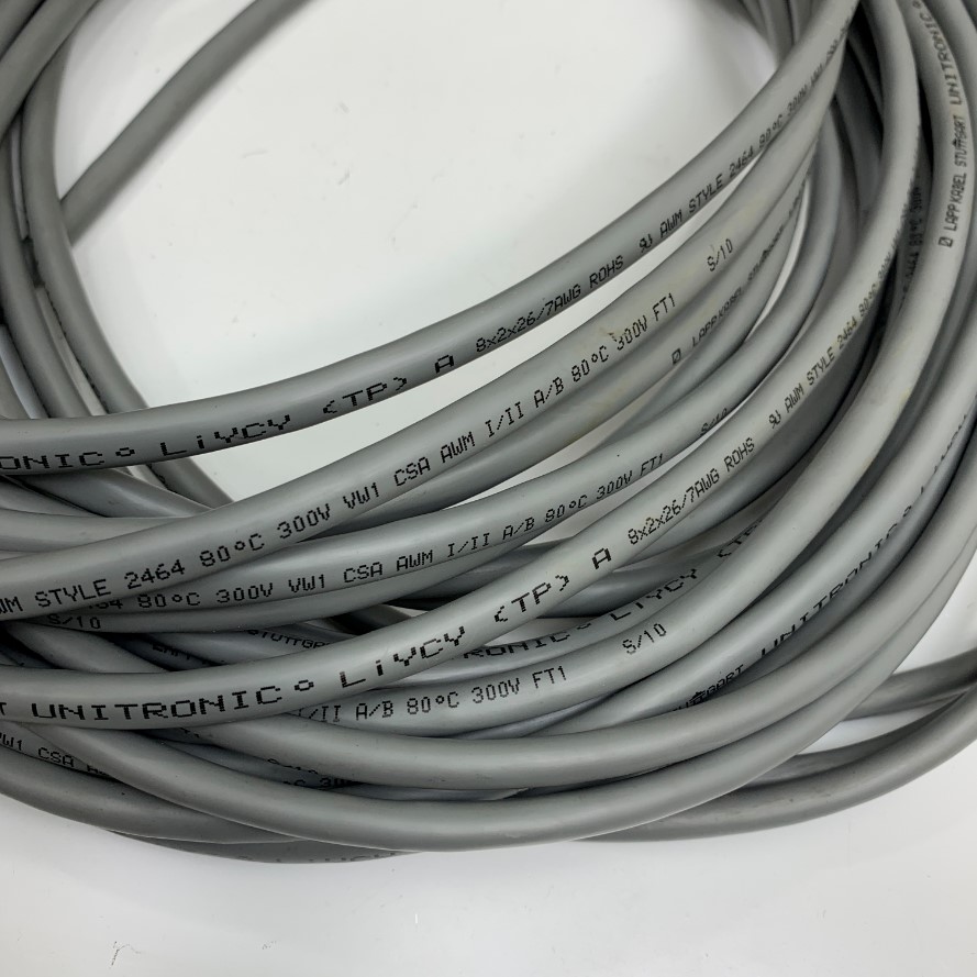 Cáp Điều Khiển Chuyển Động Dài 20M 66ft LAPP KABEL STUTTGART UNITRONIC LiYCY (TP) A 8x2x26/7AWG Shielded Cable 16 Core x 0.14 mm² OD 8.0mm Gray STYLE 2464 80°C 300V VW1