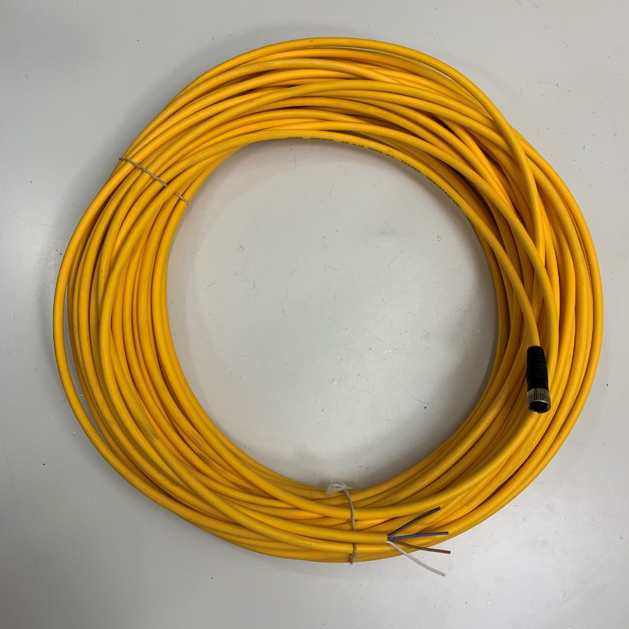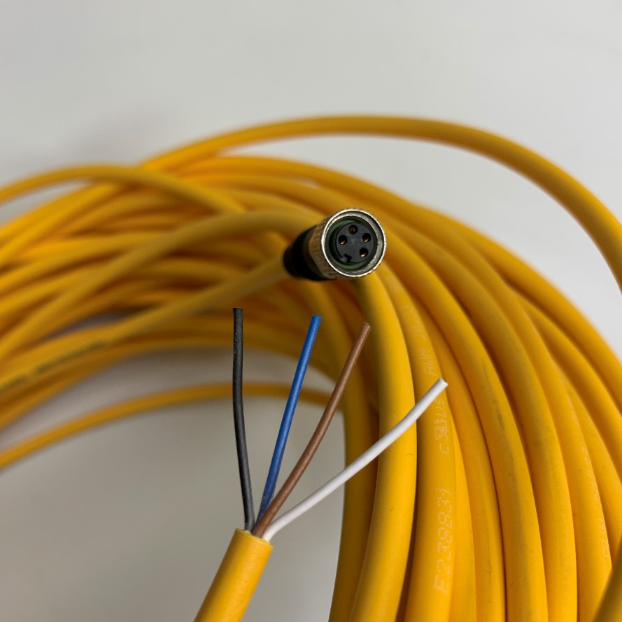 Cáp Điều Khiển Connector M8 4 Pin Female K-Coded to 4 Core Bare Wire Open End Dài 30M 90ft Cable Pilz E33141 4x0.25mm² OD 5.0mm Colour Yellow in Germany
