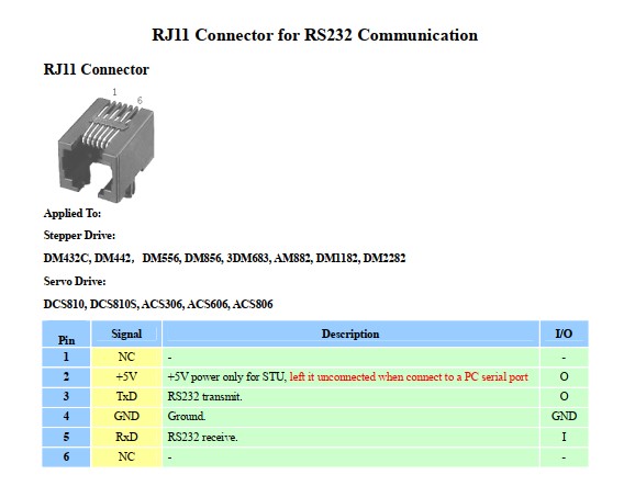 The specified stepper drive model: DM432C, DM442, DM556, DM856 3DM683 AM882 DM1182 DM2282 Servo Drive: DCS810 DCS810S ACS306 ACS606 ACS806 DB9 to rj12 6p6c serial cable, db9 adapter console cable rj12 serial console cable. length: 6feet db9 to rj12 control cable for leadshine stepper drive device Application: for Sevo drive or Leadshine stepper driver communication cable