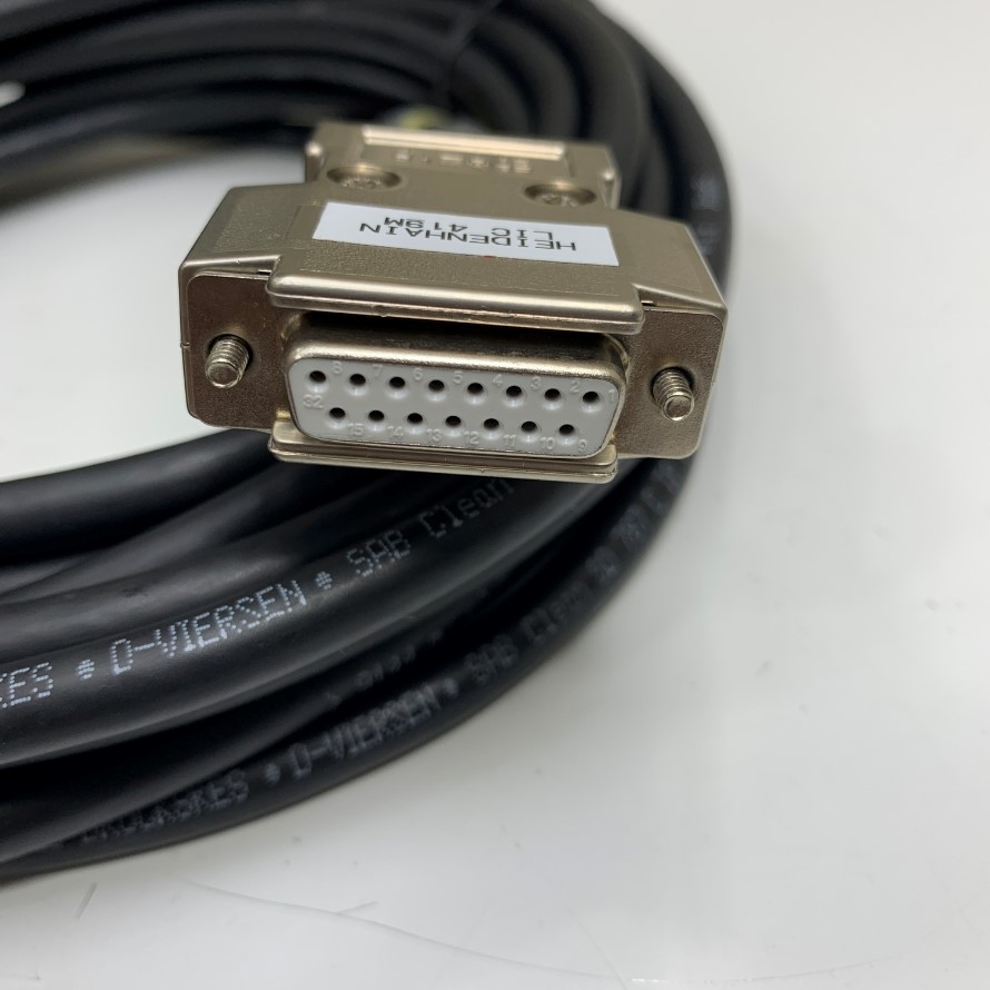 Cáp Điều Khiển ENC 8MT Heidenhain LIC9M Dài 8M 26ft Cable DB15 Pin D-Sub Female Metal to SM-10P 10 Pin Plug Cable SAB BROCKSKES 5x2x0.25mm² For Heidenhain Servo Motor Encoder