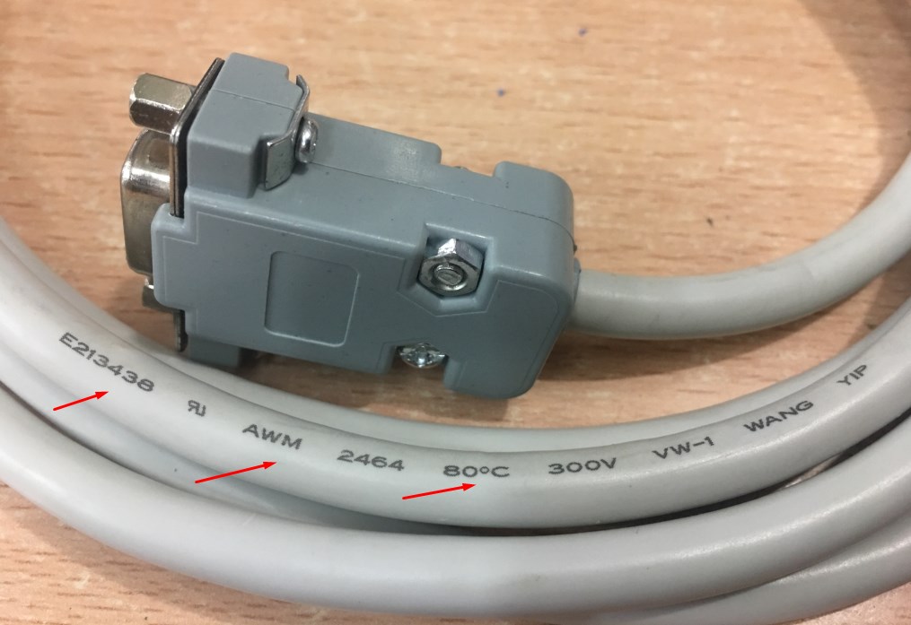 Chỉ số đo cỡ dây dẫn theo tiêu chuẩn:E213438 AWM 2464 VW-1 300V 80 Cable