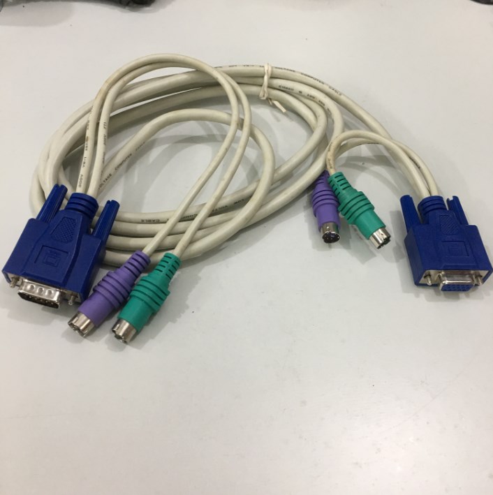 Loại sản phẩm: Cáp Điều Khiển KVM Combo Switch Cable 3 in 1 VGA Male 2 PS2 Male to VGA Female 2 PS2 Male Length 1.5M