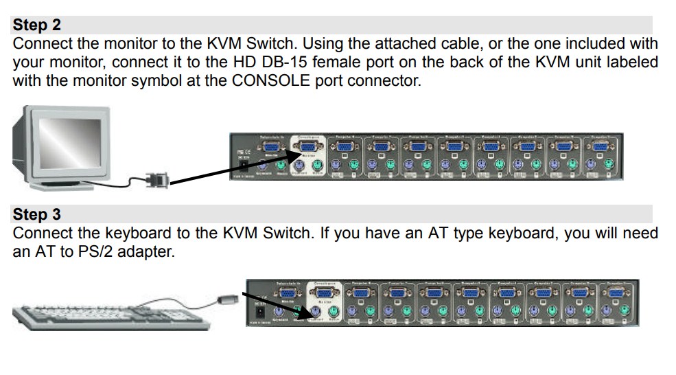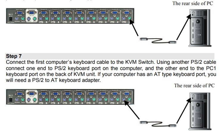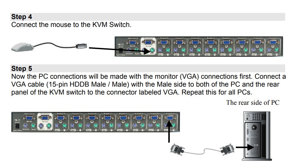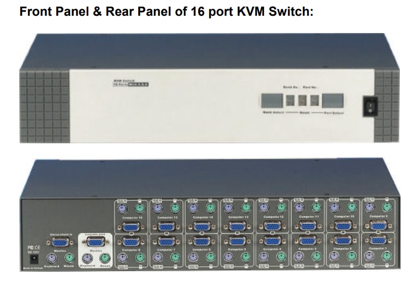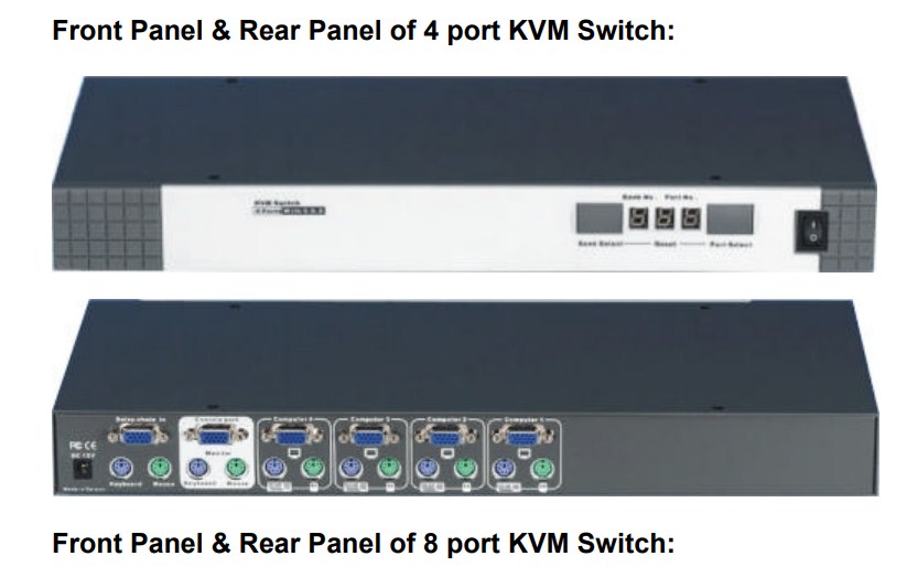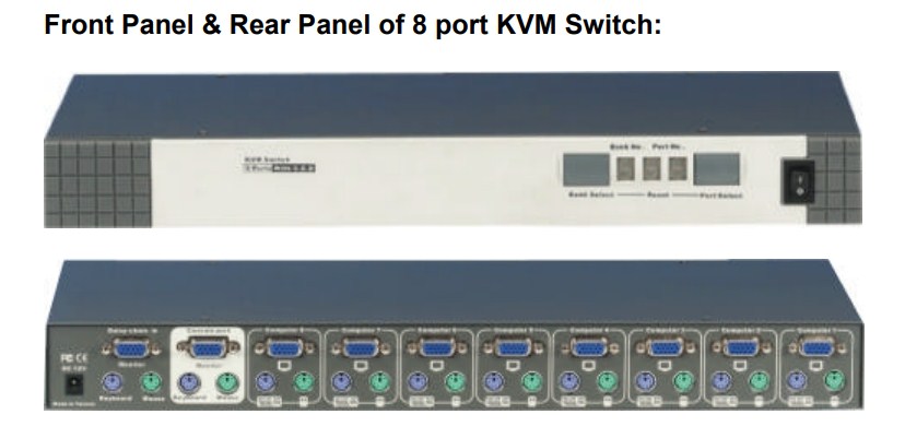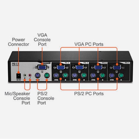 Rắc cắm kết nối KVM Switch Smart View Pro or KVM Switch B: VGA (15 pin, High Density D-Sub) Male + PS/2 Keyboard Mouse Male