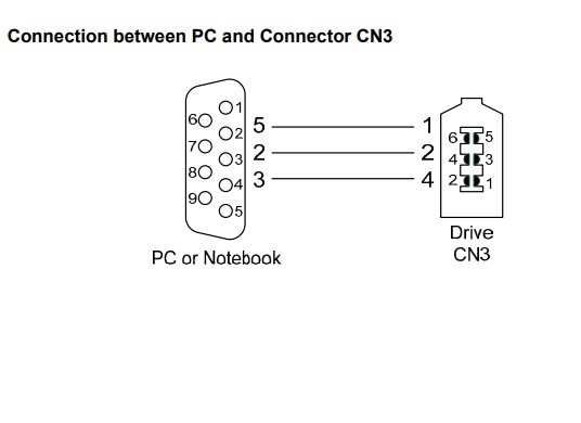 Cáp kiết nối giao tiếp nối tiếp CN3 được bố trí và nhận dạng thiết bị đầu cuối CN3 Ổ đĩa servo có thể được kết nối với PC hoặc bộ điều khiển thông qua giao tiếp nối tiếp này.