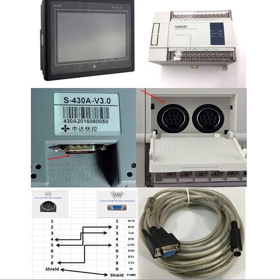 Cáp Điều Khiển Màn Hình YKHMI S-430A-V3.0 Với XINJE XC2-24R-E PLC RS232 DB9 Female to Mini Din 8 Pin Male Cable Length 10M